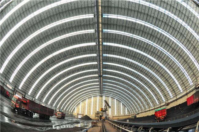 堆场料场封闭式主体结构为新型的钢永城网架结构,维修结构为永城钢结构永城不锈钢板和纤维增强塑料灯具,其外形以永城网架式和平板为主,连接柱永城施工自由,设置喷雾自动喷水系统,从而可以实现棚内所有物料的覆盖,减少物料在运输过程中的损耗,起到防尘的作用,减少工厂关闭后的二氧化硫排放量,50mg/m3颗粒排放量小于10mg/m3,非常适合低能耗。低闭库自动感应反应对库存轮胎进行清洁,确保轮胎不受道路污染;封闭的储存区可从源头控制粉尘污染,控制无序排放。